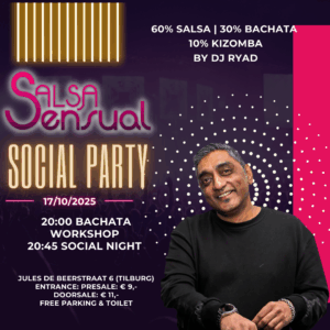 - Vrijdag 17 oktober: 20.00 – 01.00 Salsa Sensual Social Party met DJ Ryad