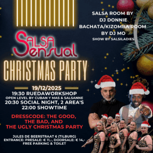 - Vrijdag 19 december: 20.00 – 02.00 Salsa Sensual Social christmas party met DJ Donnie & DJ Mo